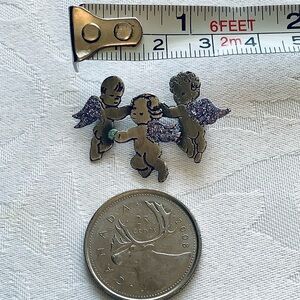 Vintage 3 Cherubs Angels Pewter Pin Brooch
