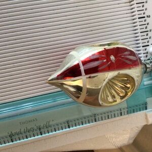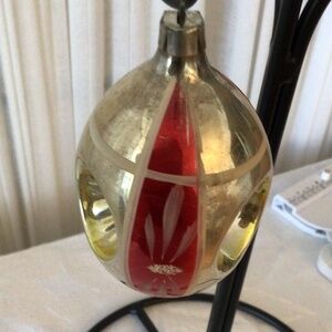 This ornament has an unusual feature of 3 indents. It is in good vintage condition.