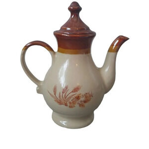 Stunning Brown, Tan, Beige Glazed Ceramic Teapot featuring a Wheat Harvest & Floral Theme. This pattern & design were made popular in the 50s thru the 70s! 4-6cups.