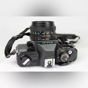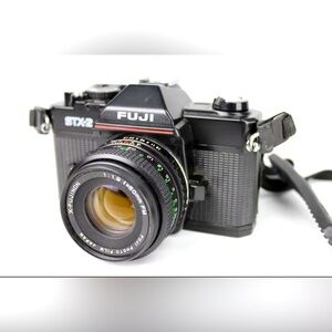 Capture timeless moments with this vintage Fuji STX-2 SLR 35mm camera. Made in Japan, this classic camera comes with a Fujinon 50mm lens for sharp and detailed shots. The manual focus feature allows for precise control over your images, making it perfect for film photography enthusiasts. With its compact design and black colour, this Fuji camera is a stylish and reliable choice for capturing your memories.