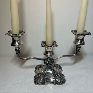 Vintage 3-Arm Coronet Silver Plate Heavy Taper Candle Holder