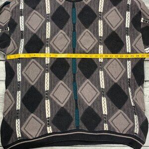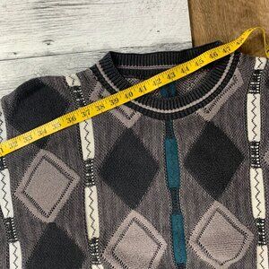 Vintage 3D Knit Sweater Grandpa Dad 90s Retro Textured Crewneck Pullover