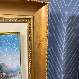 Condition: Gold paint/finish dripped along the upper left frame edge (right side as you look at it). Drip smudges down the side of the frame. See photos 5 and 6. Otherwise clean with typical age wear.