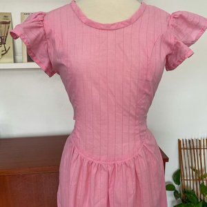 Vintage 40s Metal Zipper Pink Maxi Prairie Day Dress • Size XS