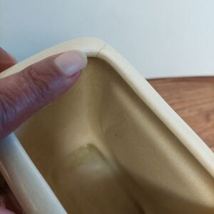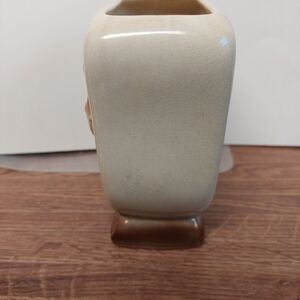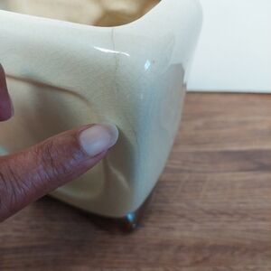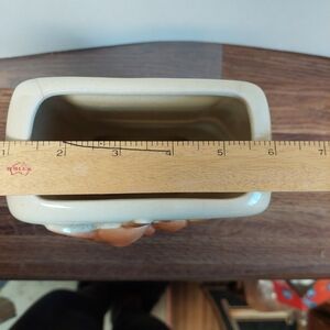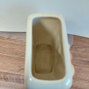 Vintage* 40s Royal Copley embossed doe nestling fawn vase/planter. Glazed. Footed. Grazing due to age on outside.