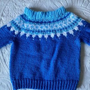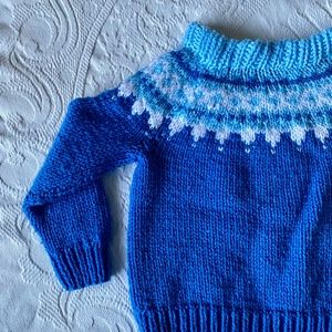 Sweetest little hand knit vintage sweater. Would fit 4T-5T comfortably and will stretch to fit a bit bigger as well. In perfect condition, no damage, stains or pulls.