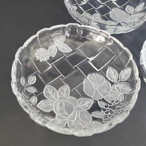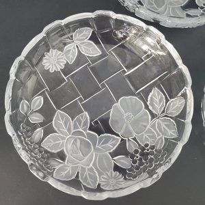 Vintage 4pc Desert Plates Basketweave Design w/ Frosted Floral Embossed 6.5"