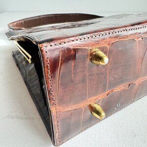 Vintage 50s 60s Crock Skin Brown medium Top Handle Bag