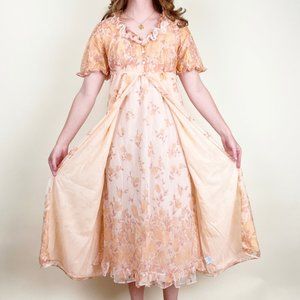 Vintage 50s 60s Nightgown Slip Dress Set Puff Sleeve Ruffle Tiered Floral MCM