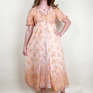 Vintage 50s 60s Nightgown Slip Dress Set Puff Sleeve Ruffle Tiered Floral MCM