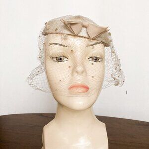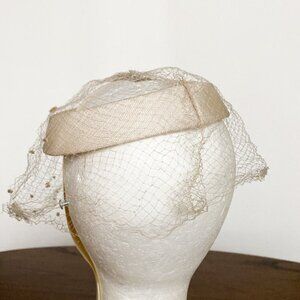 Vintage 50s 60s Nude Beige Vail Detail Headpiece S