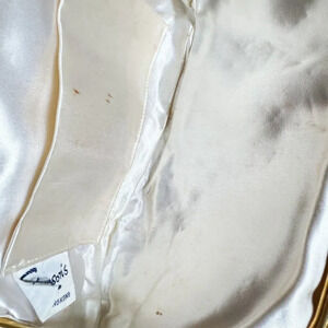 The ivory satin material and beaded details give it a glamorous look that is perfect for a special occasion.