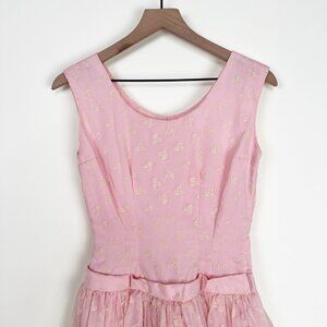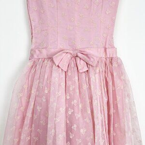 Stunning Vintage 50s 60s Tea Dress Midi Romantic Drop Waist Balletcore Floral Sheer Mesh Brand: No brand tag looks to be handmade Date: 1950s - 1960s Features: Pleating at the waist, thick straps, scoop crew neck, fit & flare silhouette Colours: Light baby pink with white florals Composition: No material tag Size: No size tag, but it can fit a modern size S, XS, or XXS, depending on your desired fit Measurements Flat: Pit-to-pit is 17”, waist is 12.5", length is 45” Condition: Great pre-owned vintage condition. Minor wear consistent with age Closet Style Tags: Vintage, Retro, MCM, Mid Century Modern, 40s, 40’s, 50s, 50’s, 60s, 60’s, 70s, 70’s, Preppy, Dark Academia, European, Quiet Luxury, Understated Luxe, Normcore, Minimalist, Classic, ​​Capsule Collection Wardrobe, Sporty, Ivy League, Old Money, Tennis Prep, Balletcore, Elevated Basic, Streetwear, Beach, Loungewear, Athleisure, Fisherman, Eccentric, Eclectic Grandpa, Quirky, Coastal Grandmother, Grandmacore, Nautical, Core Aesthetic, Artsy, Indie, Maximalism, Disco, Romantics, Doll, Whimsical, Whimsigoth, Gothic, Witchy, Victorian, Fairycore, Princess, Regency, Granola Girl, Cowgirl, Western, Rustic, Equestrian, Country, Westerncore, Hippie, Bohemian, Boho, Festival, Office, Work, Business Casual, Cottagecore, Prairie, Folk, Scandinavian, Knit, Barbiecore, Coquette, Feminine, Formal, Cocktail Party, Prom, Wedding Guest, Spring, Summer, Fall, Winter, Christmas, Easter, Unique, Heirloom, Hand Made, Pleated