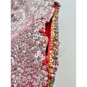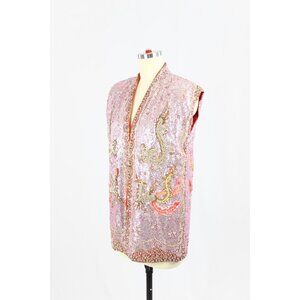 Vintage 50's Chinese Pink Red Beaded Sequin Dragon Phoenix Silk Wedding Vest