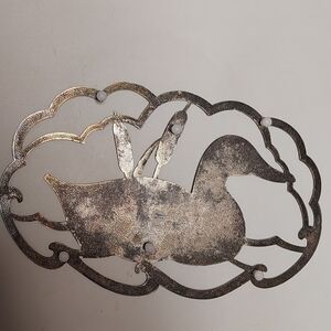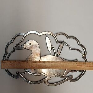 Vintage* 50s Elegance Silver-plated zinc Duck Trivet. Approx 10.25" x 6.5"