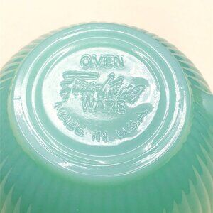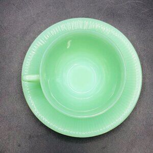Vintage 50s FIRE KING USA Jadeite Jane Ray Teacup and Saucer Set: MCM Glassware