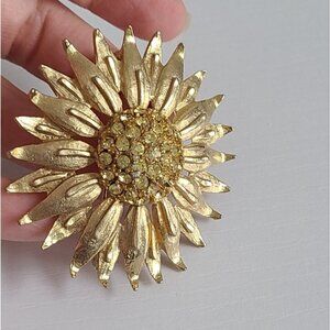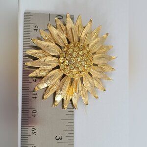 Vintage 50s Gold Tone Large Chunky Sun Flower Statement Brooch