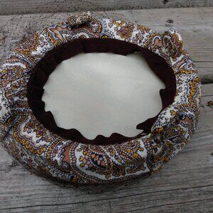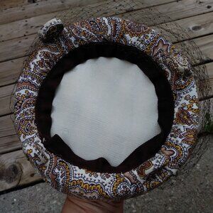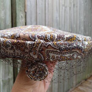 Vintage 50s Hat Brown Yellow Paisley Topper Netting Veil