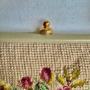 Vintage 50s Needlepoint Floral Tapestry Handbag