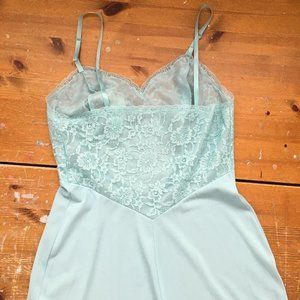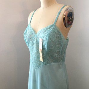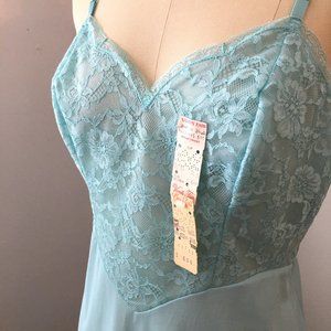 Vintage 50s Robin's Egg Blue Lace Full Slip, NWT, 34" Bust, Slip Dress