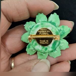 Vintage* 50s Royal Adderley Floral Brooch. Porcelain. Delicately hand-made and painted. Note point of one leaf missing but not noticeable. See photo. Made in England. Lovely Brooch. Approx 1.5" across.