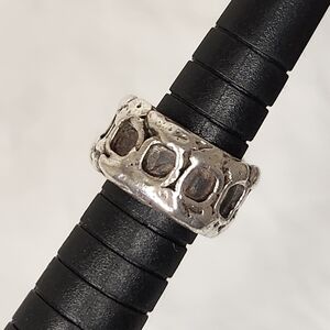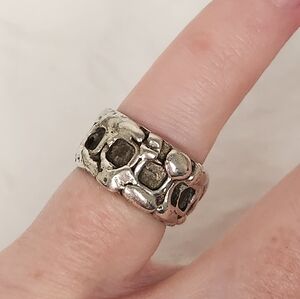 Vintage 1950s, Mid Century, Organic, Raw, Textured, Sculptural Melting Squares, makes me think of Miner's in a cave, Excellent Condition, no markings, last 2 photos show pre-polished patina, Pinky Size 4.