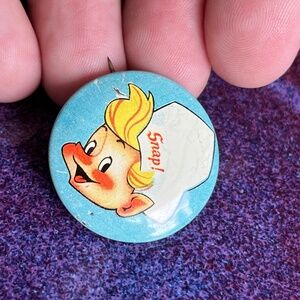 Vintage 50s Snap! Rice Krispies cereal prize pin / badge / button. Very good used condition, a small scuff, see photos for details. Measures approx. 1" across.