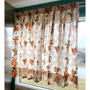Vintage 50s curtain, orange fruits print, oranges, peaches, single pleated panel