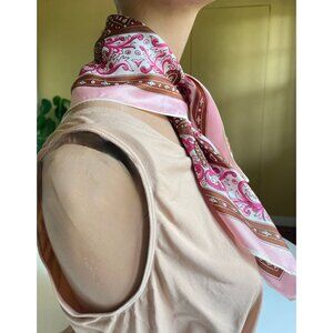 Adorable vintage 50s scarf, from Honey Original Japan. Gorgeous pink hot pink and brown floral / paisley pattern. Material is unknown. Condition is excellent with no noted issues.