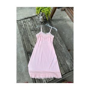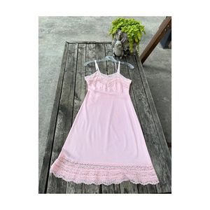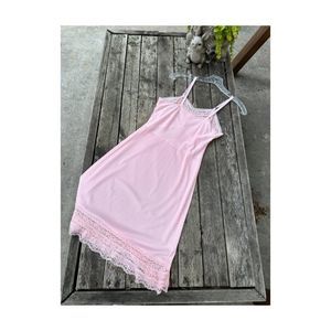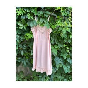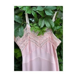 Vintage 50s Pink Nylon Slip Dress Lace Trim Lady Barbara Pinup Midcentury Pastel