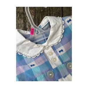 Vintage 50s Plaid Dress Pink Blue Attached Crop Jacket Cuffed 12-24M
