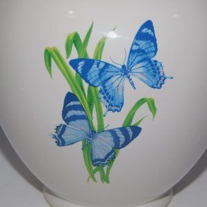 Vintage 6" FTD Florist White with Blue Butterflies Ceramic Flower Vase