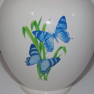 This beautiful vintage 6" FTD Florist White with Blue Butterflies and grass Ceramic Flower Vase is in great clean condition free of cracks, ,chips and crazing. Measures 6' Tall and 6" wide a the widest part. Opening is 3" in diameter.