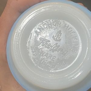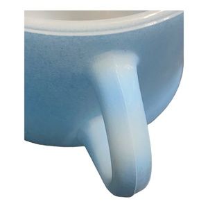No chips or cracks. Some fading of blue frosting on handles of some mugs. See last pic. Otherwise good used vintage condition