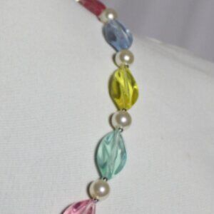 Vintage 60cm Faux Pearl and Pastel Translucent Beaded Necklace