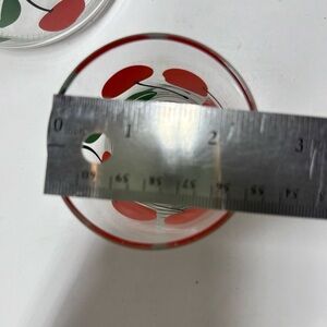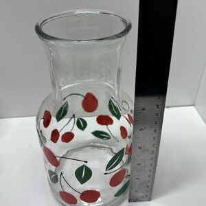 Vintage 60s 3 piece Libbey Cherries set: includes pitcher and two tumblers. This charming trio is in amazing preowned condition with no chips, cracks, paint wear, or cloudy glass. There are no scratches or dullness to the cherries. This would look amazing as part of a retro kitchen display.