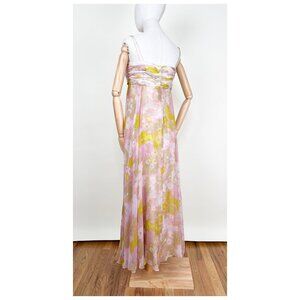 Vintage 60s 70s Custom Made Maxi Dress Gown Floral Print Pleated Romantic Boho