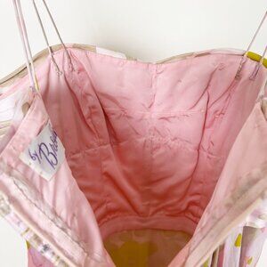 Colours: Light baby pink, sunshine yellow, taupe tan, & pearly white floral print
