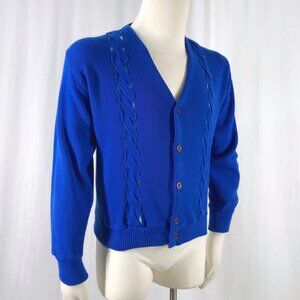 Vintage 60s 70s Mens Cardigan Blue Braided Golf Grandpa Sweater