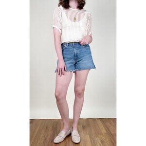 Vintage 60s 70s Norwegian Military Open Knit Net Blouse Top Shirt Cover Up Sexy