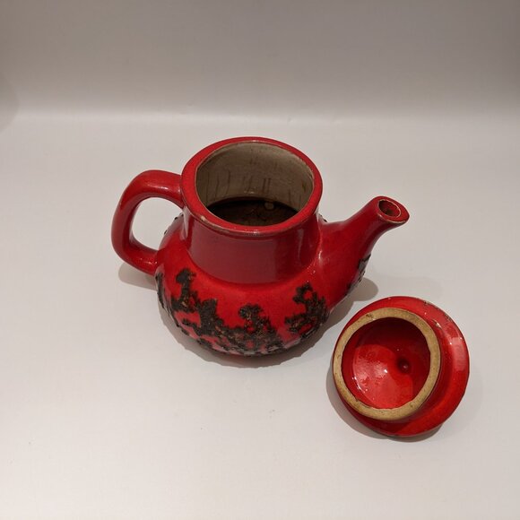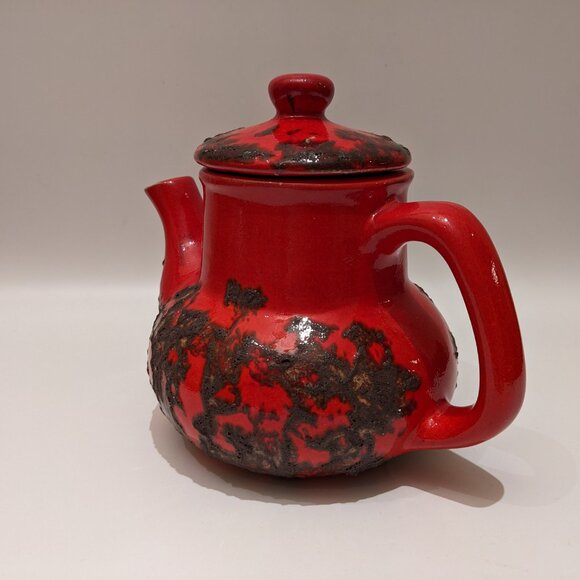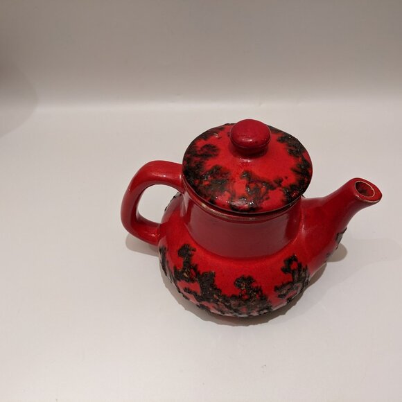 Vintage 60s 70s Red Fat Lava Pottery Teapot - Mid Century MCM Laurentian Pottery