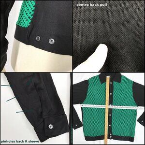 Vintage acetate knit shirt with basket weave front panel. Polo collar, button front. Tag does not indicates 100% celanese acetate knit - thin and lightweight. Black with kelly green basket weave check pattern. Label is Diplomat marked a size M but please go by measurements below to determine fit as vintage sizes vary