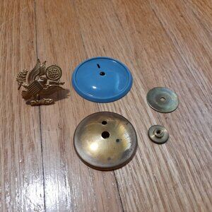 Vintage 60s 70s U.S. Infantry Cap Badge Military Light Blue Disc Screw Back