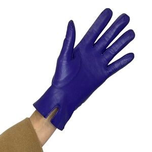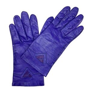Vintage 60s 70s purple leather geometric suede detail short gloves