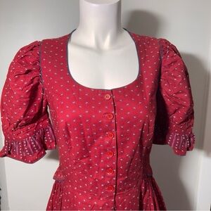 Vintage 60s Alphorn Red Traditional Austrian Folk Button Dress 100% Cotton Sz 6