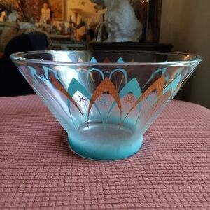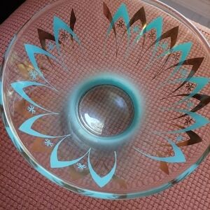 Vintage* 60s Atomic Age Turquoise & Gold Glass Chip Bowl