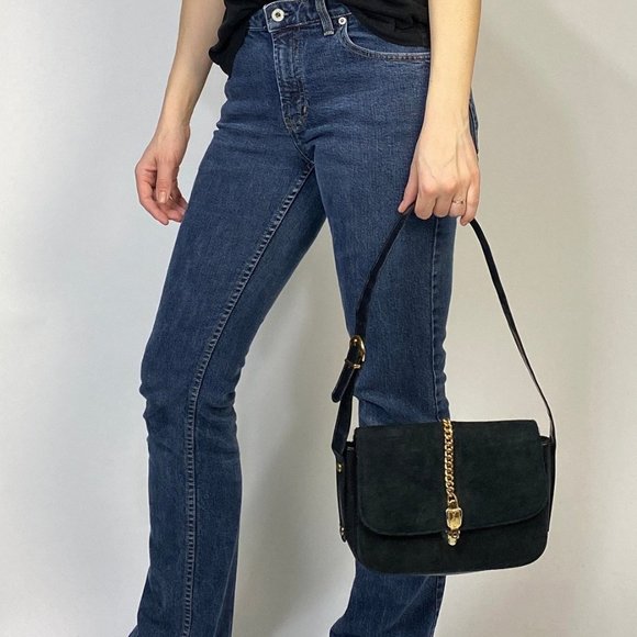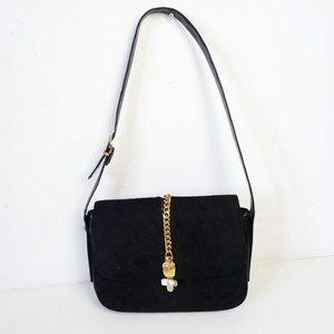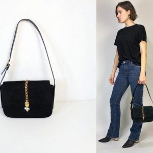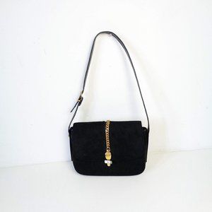 Vintage 60s Black SUEDE Leather CHAIN Detail Shoulder Bag!