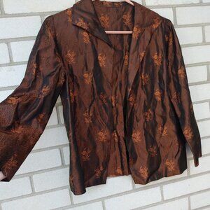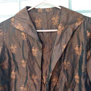 Fabric may be a satin brocade. Shiny copper colors.