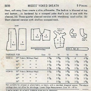60s dress pattern - Butterick 8699 - roll collar sheath dress with bloused bodice and pencil cut skirt.