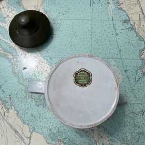 Vintage 60s green and gold floral teapot. Stamped Mirage Ironstone Ware by Myott England on bottom. Good used condition, no chips or cracks however does have some crazing inside, see photos. Measures 8" x 6.5" x 4.75".